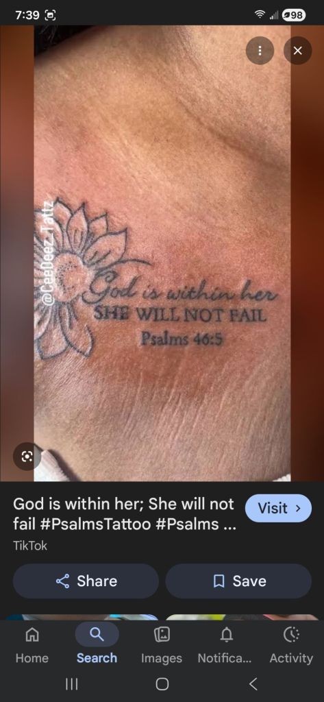 However. Lately I have been pondering the process of getting one again… the desire came about when a girl i know at work got a word tattoo. The artist who did it brought beautiful script writing to life. As a wordsmith at heart, it is words i dream of not so much extensive pictures, or graphics. I am now deciding on placement… maybe my first tstt[ will come soon. If so this is it… my mantra.